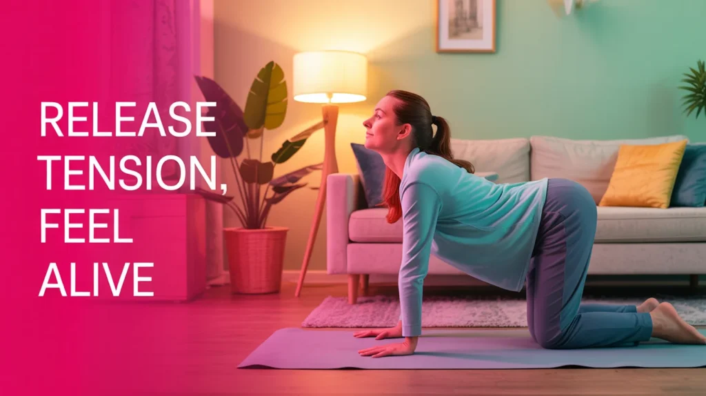 This yoga-inspired stretch improves spine mobility and releases tension in the back and neck, areas that can become stiff from sitting or stress.
